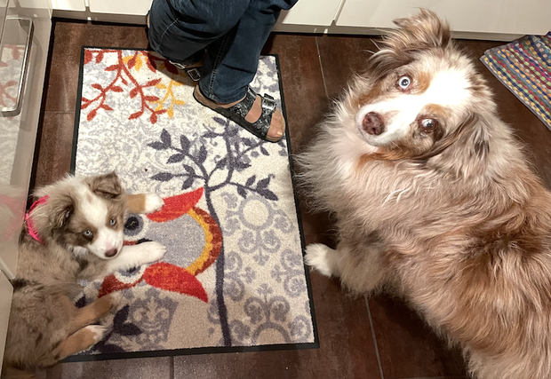 Milki ist 7 Monate alt, 37cm groß und 7,3 kg schwer. Sie ist im Moment in der Gruselphase - zwischendurch werden Menschen im Wald, Bändchen an Bäumen oder andere "normale" Sachen angebellt und angeknurrt... Auch das Treppe hoch- und runtertragen ist plötzlich eine schlimme Sache (selbst laufen geht aber auch noch nicht...)... wie in allen Lebensphasen braucht es manchmal ein bisschen Zeit, bis alles wieder "normal" ist - wobei... was ist eigentlich normal... Wir haben unsere kleine Milchschnitte sehr lieb und können sie uns hier nicht mehr wegdenken...